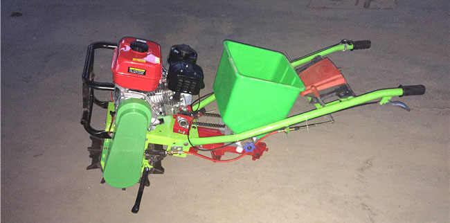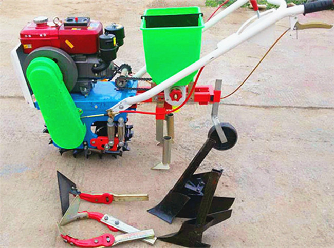 多功能汽油施肥播種器是旱田使用的小型機(jī)械。適用于所有旱田農(nóng)作物壟間作業(yè)。是廣大農(nóng)民朋友實(shí)現(xiàn)農(nóng)業(yè)機(jī)械化的首選產(chǎn)品。    選配正規(guī)企業(yè)生產(chǎn)的變速箱,汽油機(jī)為配套動(dòng)力。易啟動(dòng),輕便耐用。整體板設(shè)計(jì),一次成型,堅(jiān)固耐用。加粗手把。人性化的.手油門設(shè)計(jì)。新款增添了高低空檔掛擋離合功能獨(dú)特的主輪設(shè)計(jì)不溜溝,揚(yáng)塵少,減少向變速箱漏土及纏草。主要功能:施肥;播種;松土;除草;開溝;扶壟;培土等